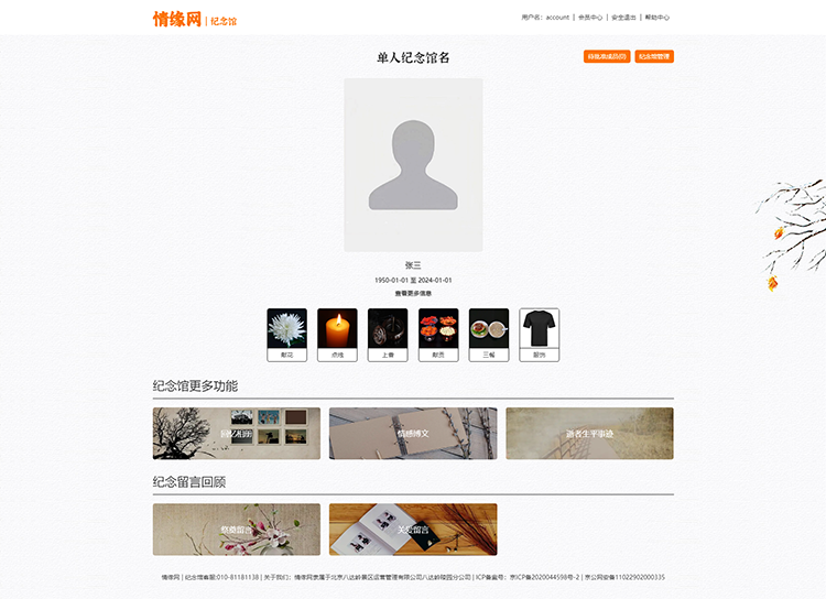 關(guān)于我們:情緣網(wǎng)隸屬于北京八達(dá)嶺景區(qū)運(yùn)營(yíng)管理有限公司八達(dá)嶺陵園分公司