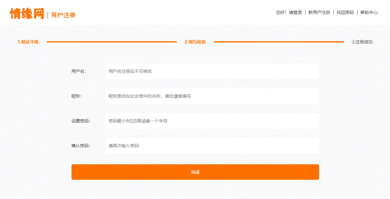 步驟二:填寫用戶名、昵稱、兩遍密碼,點擊下一步;